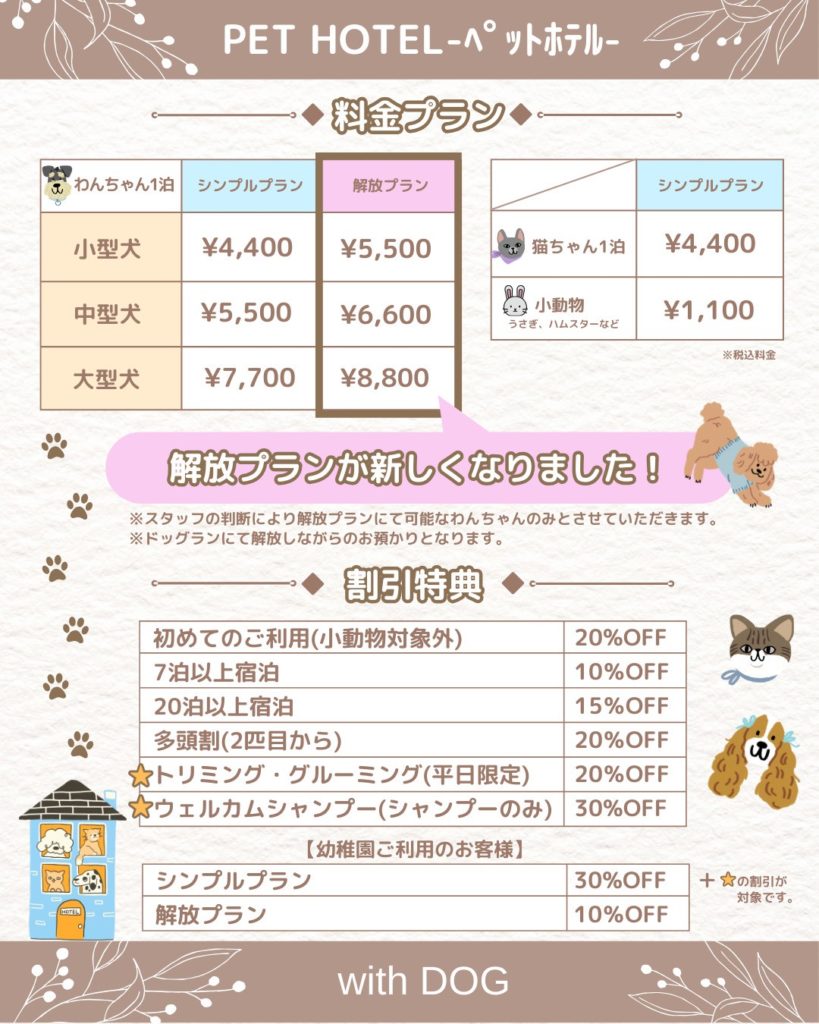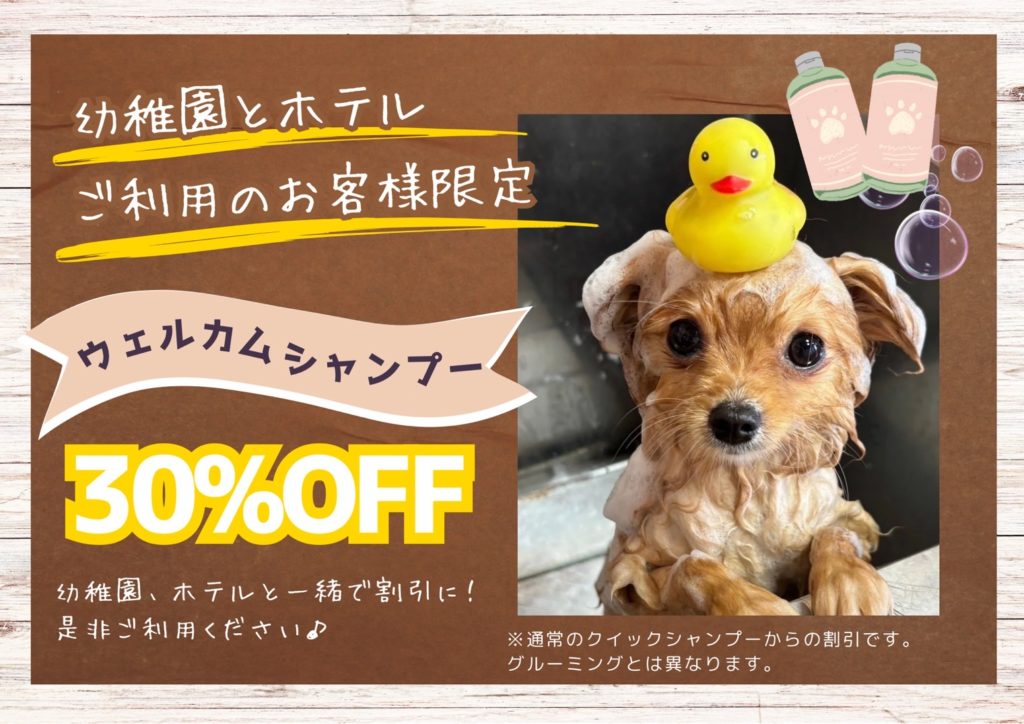 幼稚園生はトリミング、ペットホテル30%割引サービスもございます✂︎